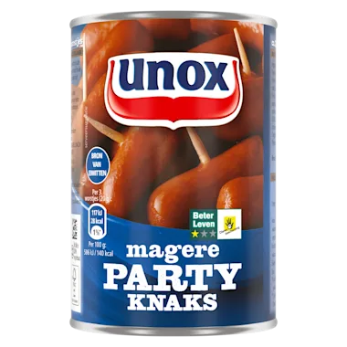 Unox Magere Party Knaks zijn perfect bij de borrel of als traktatie op een feestje. Al sinds 1937 worden de knakworsten van Unox volgens traditioneel slagersrecept gemaakt in het Brabantse Oss. Voor het maken van de Unox Magere Party Knaks worden alleen die ingrediënten gebruikt die nodig zijn om een lekkere, sappige knakworst te maken. Daarom zijn de Unox Magere Party Knaks bereid met varkensvlees met het Beter Leven-keurmerk 1 ster en met de unieke Unox-kruiding, die bestaat uit met zorg geselecteerde specerijen. Deze magere knakworstjes bevatten 35% minder vet dan een normale knakworst. Hierbij worden geen toegevoegde smaakversterkers gebruikt. Unox Knaks zijn al jarenlang de favoriete snack van Nederland - lekker op een broodje of gewoon uit het vuistje! Wist je dat onze klassieke Knaks een uitstekende bron van eiwitten zijn? Iedereen kan genieten van de vertrouwde, hartige smaak die zo geliefd is bij zoveel mensen in Nederland.