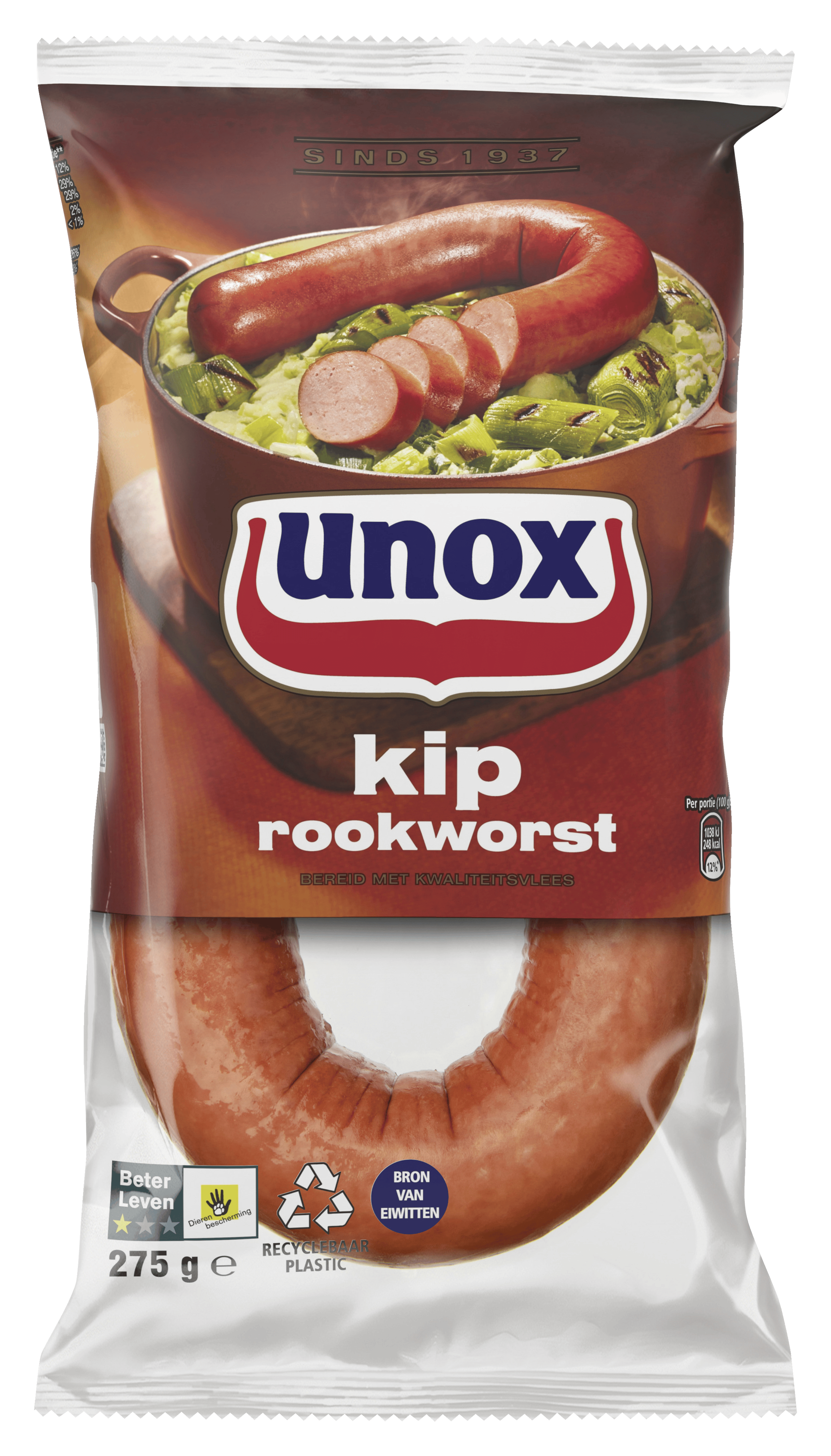 Hoe het ook zij, vanaf 1937 worden onder de merknaam Unox de lekkerste rookworsten gemaakt. Wij geloven dat de lekkerste producten alleen gemaakt kunnen worden van de beste ingrediënten en daarom werken wij continu aan het verbeteren van onze producten. De verpakking van deze rookworst is bovendien gemaakt met recyclebaar plastic. Zo zorgen wij ervoor dat ook de komende generaties op een verantwoorde manier kunnen genieten van onze producten.