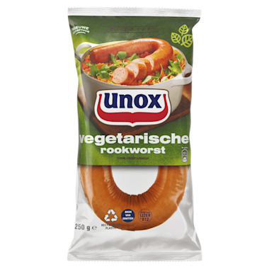 Al meer dan 80 jaar is Unox onlosmakelijk verbonden aan de Hollandse keuken. Inmiddels zijn veel Nederlandse huishoudens fan van Unox-producten. Over het ontstaan van de merknaam Unox gaan verschillende verhalen. De een beweert dat iemand eens bedacht heeft om Unilever, Oss en Ox (Engels voor os) samen te voegen tot Unox. En anderen zweren dat de naam een uitkomst is van een prijsvraag onder werknemers. Hoe het ook zij, vanaf 1937 worden onder de merknaam Unox de lekkerste rookworsten gemaakt. En tegenwoordig maken we niet alleen rookworsten, maar ook soep, knaks, snacks en zelfs vegetarische gehaktballetjes. Zo is er dus een voorgerecht, hoofdgerecht of snack voor iedereen. Wij geloven dat de lekkerste producten alleen gemaakt kunnen worden van de beste ingrediënten en daarom werken wij continu aan het verbeteren van onze producten. De verpakking van deze rookworst is bovendien gemaakt met recyclebaar plastic. Zo zorgen wij ervoor dat ook de komende generaties op een verantwoorde manier kunnen genieten van onze producten.