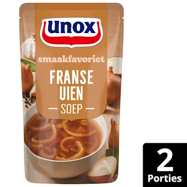 Unox Smaakfavoriet Franse Uien Soep in Zak met grofgesneden uien, zwarte peper en laurier is een van de heerlijke soepen van Unox. Deze zak is goed voor twee kommen soep. Deze vegetarische uiensoep heeft geen toegevoegde conserveermiddelen, toegevoegde suikers, toegevoegde smaakversterkers of kunstmatige kleurstoffen. De verschillende groenten, zoals de grofgesneden uien in deze soep, zorgen samen met de zwarte peper en laurier voor een heerlijk rijke smaak. De soep is klaar in een handomdraai! Bij Unox zijn we echte soepliefhebbers en we doen ons uiterste best om de lekkerste soepen te maken, voor iedereen. Unox heeft een soep voor elk moment: lekker als lunch, voorgerecht of complete maaltijd.