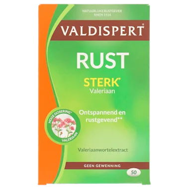 Valdispert Rust Extra Sterk is een natuurlijk en plantaardig middel en bevat als werkstof het extract uit de valeriaanwortel. Dit natuurlijke valeriaanextract heeft een rustgevende en ontspannende invloed en bevordert van het concentratievermogen. Door de rustgevende en ontspannende invloed zorgt Valdispert Rust Extra Sterk voor innerlijke rust en bevordering van het concentratievermogen.