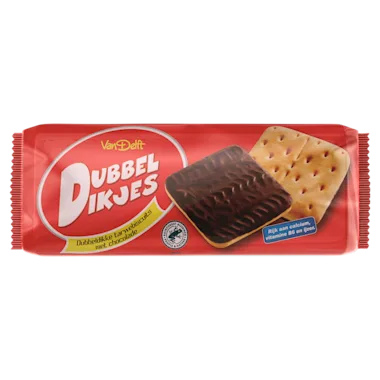 Tarwebiscuits met melkchocolade met toegevoegd calcium, vitamine B6 en ijzer