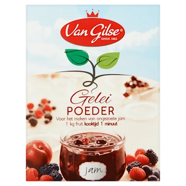 Maak 1 kilo schoongemaakte vruchten fijn. Meng 1 zakje Van Gilse Geleipoeder met 250 gram Van Gilse Kristalsuiker. In plaats van suiker toe te voegen, kan de jam na het koken naar smaak gezoet worden. Meng de geleipoeder met de vruchten. Breng dit in een grote, hoge pan al roerend aan de kook. Laat het mengsel 1 minuut goed doorkoken. Vul glazen potten tot de bovenrand met de hete jam. Sluit de potten goed af en zet ze 5 minuten ondersteboven.