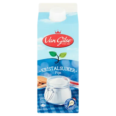 Van Gilse fijne Kristalsuiker is een speciaal geselecteerde fijne korrel. Door de fijne structuur lost de Van Gilse Fijne Kristalsuiker sneller op en is hierdoor ideaal voor het bakken van taarten, cakes en koekjes.