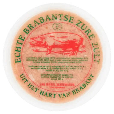 varkensvlees 33%, varkensbouillon, varkenszwoerd 23%, voedingszuur(e325, e260), zout, kruiden, specerijen, aroma, gistextract, dextrose, anitoxidant(e316), conserveringsmiddel(e250)