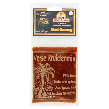 Fruit de kruidenmix in ca. 2 eetlepels olie. De in stukjes gesneden kip, vlees of garnalen toevoegen en even aanbraden. Vervolgens de in ringen gesneden lente uitjes mee fruiten (e.v.). Voeg de gekookte rijst in gedeelten erbij en bak dit geheel al roerend op. Naar smaak zout, ketjap of sambal toevoegen, garneren met reepjes omelet, atjar, seroendeng, pikantjes, krupuk, mempejeh.