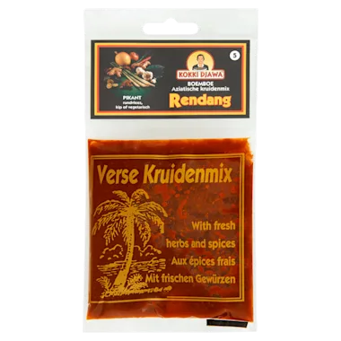 Fruit de kruidenmix in ca. 2 eetlepels olie. Doe de in stukjes gesneden rundvlees of kip erbij en even aanbraden. Voeg hieraan toe 250 ml water en de santen of cocosmelk. Laat het geheel gaar sudderen en tot de gewenste dikte indampen.