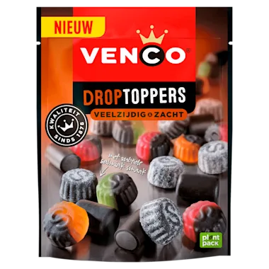 Als je van VARIATIE houdt, zijn deze lekkere Droptoppers JOUW KEUZE: een heerlijke zachte DROPMIX met Salmiak rondjes, Drop-mint staafjes, licht pittige Schoolkrijtjes en Dropfruit Duo's met een verrassende smaaktwist. Door de VEELZIJDIGHEID is er voor ieder wat wils in deze zak.
