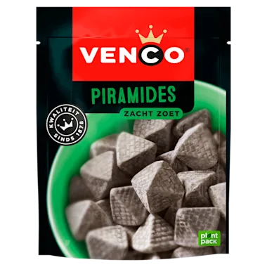 Deze zachte, luchtige Piramides hebben we een subtiele dropsmaak gegeven. Een uitgebalanceerde combinatie van mild dropextract en salmiak. De buitenkant heeft een licht poederlaagje voor een nog spannender gevoel in je mond.