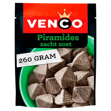 Deze zachte, luchtige Piramides hebben we een subtiele dropsmaak gegeven. Een uitgebalanceerde combinatie van mild dropextract en salmiak. De buitenkant heeft een licht poederlaagje voor een nóg spannender gevoel in je mond.