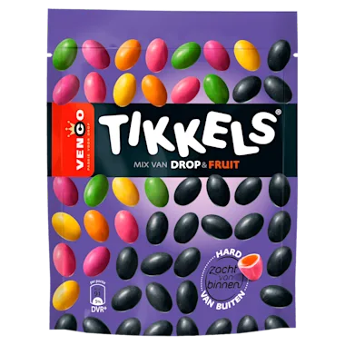 Hard van buiten en Zacht van binnen, dat is wat deze Tikkels zo bijzonder maakt! Deze Unieke Structuur zorgt, samen met de smaakvolle variatie van Drop en Fruit Tikkels, elke keer voor een verrassende Bite waar je niet van af kunt blijven. Welke vind jij het lekkerst? Probeer ook eens onze mix van Drop & Dropmint Tikkels.