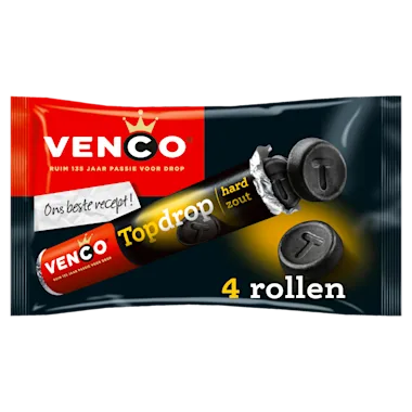 Hard-zoute dropjes in een handig rolletje. Makkelijk om mee te nemen