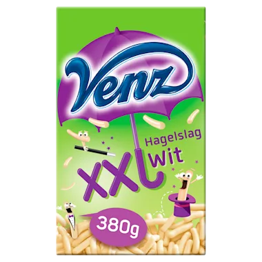 Venz maakt al sinds 1936 chocolade hagelslag en zorgt elke dag weer voor veel plezier aan tafel! Venz XXL Hagelslag Wit brengt extra grote korrels pure hagelslag voor een extra intense smaakervaring. Dat is nog eens FUN! Je kan Venz hagelslag melk of puur, of Venz Rimboe vlokken of hagelslaggebruiken als zoet broodbeleg om havermout, yoghurt, ontbijtgranen, brood en baksels nog lekkerder te maken! Wij geven om kwaliteit en duurzaamheid. Venz wil bijdragen aan een betere wereld voor mens en natuur. Daarom kopen wij onze cacao op verantwoorde wijze in bij Rainforest Alliance gecertificeerde boerderijen. www.rainforest-alliance.org