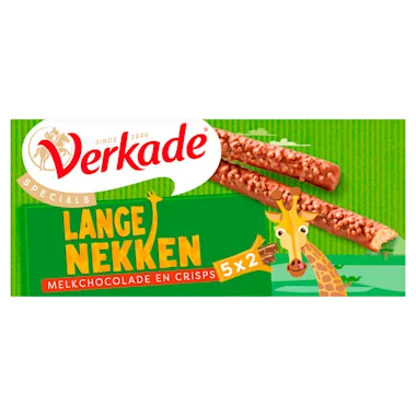 Verkade Lange Nekken zijn zooo lekker waardoor je er extra lang van kunt genieten. Het zijn heerlijke knapperige koeksticks met krokante crisps en lekkere chocolade.