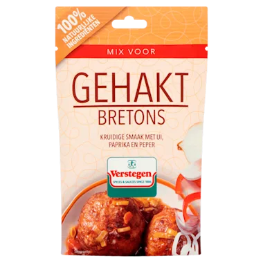 Bereidingswijze (voor 4 personen): meng deze mix met 500 g gehakt en voeg eventueel een ei toe. Draai gehaktballen en bak deze op matig vuur in 20 à 25 minuten mooi bruin en gaar.