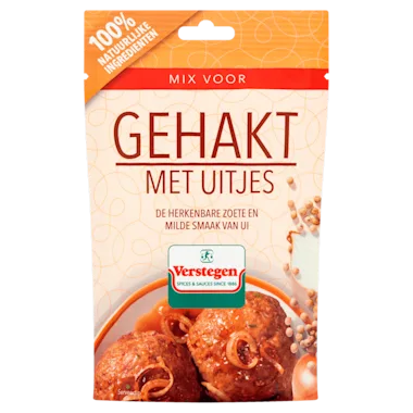 Bereidingswijze (voor 4 personen): meng deze mix met 500 g gehakt en voeg eventueel een ei toe. Draai gehaktballen en bak deze op matig vuur in 20 à 25 minuten mooi bruin en gaar.