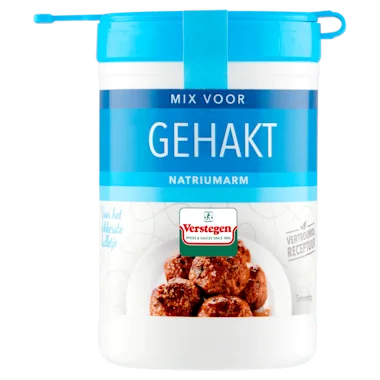 Bereidingswijze (voor 4 personen): meng ca. 1 el (10 g) Verstegen mix met 500 g gehakt. Voeg eventueel 1 beschuit/20 g paneermeel, een ei of 100 ml melk/water toe. Draai vier ballen, verhit 2 el (olijf)olie in een koekenpan en bak de ballen op matig vuur in ca. 20-25 min rondom mooi bruin en gaar.