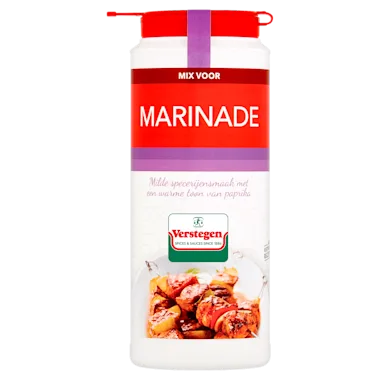 Bereidingswijze: week de satéprikkers in koud water. Snijd de kipfilet of het varkensvlees in blokjes van ca. 3x3 cm. Marineer de kip(dij)filet of het varkensvlees met de Verstegen mix en de ketjap/sojasaus. Laat dit ca. 30 min intrekken. Rijg de blokjes aan de satéprikkers. Rooster de spiesjes op de BBQ of in een grillpan, of bak ze in een koekenpan met (zonnebloem)olie, ca. 12-17 min op matig vuur rondom gaar.