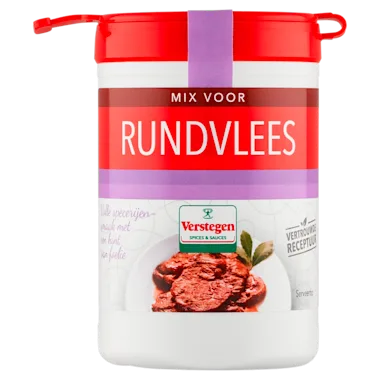Samen maken we de lekkerste gerechten met de vertrouwde smaak van vroeger. Jij kookt en wij leveren de beste kruiden en specerijen. We waarborgen niet alleen de beste kwaliteit, maar zetten ons ook in voor eerlijke handel en klimaat neutraal ondernemen. Samen werken we aan een duurzame wereld, doe je mee? Ben je op zoek naar een lekkere kruiden en specerijen mix voor je rundvlees, runderlappen of sukade lappen? Je maakt met deze kruiden mix met volle specerijensmaak een heerlijk stoofgerecht zoals stoofvlees. Bereidingswijze (voor 4 personen): wrijf 800g runder(rib)lappen of sukadelappen in met circa 1,5 eetlepel Verstegen mix en laat het even intrekken. Snijd in grove stukken, verhit 2 eetlepels (zonnebloem)olie in een braadpan en bak het vlees kort op hoog vuur rondom bruin. Zet het vuur laag, voeg circa 300ml water toe en stoof in circa 2-3uur gaar.