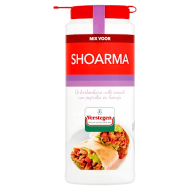 Ingrediënten: specerijen (21% komijn, 5% paprika, nootmuskaat, venkelzaad, peper, kruidnagel, kurkuma, gember, fenegriek, piment, chilies), zout, rijstebloem, glucosestroop, natuurlijke aroma's (bevat SELDERIJ).