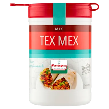 Samen maken we de lekkerste gerechten met de vertrouwde smaak van vroeger. Jij kookt en wij leveren de beste kruiden en specerijen. We waarborgen niet alleen de beste kwaliteit, maar zetten ons ook in voor eerlijke handel en klimaat neutraal ondernemen. Samen werken we aan een duurzame wereld, doe je mee? Met deze traditionele kruiden mix van Verstegen kruid je je vlees voor taco's, burrito's en andere Mexicaanse gerechten op een lekkere manier! Bereidingswijze (voor 4 personen): bestrooi 500g kip(dij)filet of vlees met circa 1,5 eetlepel Verstegen mix en laat het even intrekken. Verhit 2 eetlepels (olijf)olie in een koekenpan en bak de kip of het vlees op matig vuur gaar. Snijd de kip of het vlees in blokjes/reepjes en voeg als vulling toe aan een taco, tortilla of burrito.