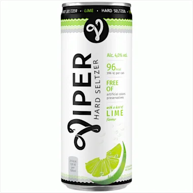 Viper Hard Seltzer is een sparkling water met een bite. Viper smaakt fris, als een sprankelend bronwater met een vleugje limoen. Het bevat 4% alcohol en slechts 96 calorieën per blikje van 33 cl. Ideaal voor alle feestmomenten!