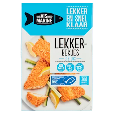 Een portie (1 lekkerbek, bereid in de oven) is 100 gram. Deze verpakking bevat 3 porties.