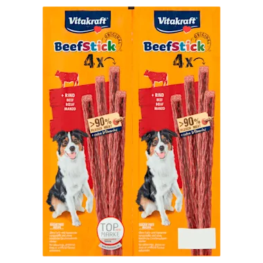 De Vitakraft Beef Stick Rund verrast jou en je hond door de topkwaliteit, eenheerlijke geur en het zeer hoge vleesgehalte en dat alles met een unieke smaak. Bovendien is deze onweerstaanbare hondensnack verkrijgbaar in diverse smaken, waaronder rund. Welke smaak je ook kiest, het wordt gegarandeerd smullen! Wist je dat de Beef Stick Rund een suikervrij receptuur heeft en geen kleurstoffen, conserveringsmiddelen en smaakversterkers bevat? Dat maakt deze hondensnack niet alleen extra lekker, maar ook heerlijk puur van smaak! Kortom, de Beef Stick Rund is pure verwennerij voor je geliefde hond.