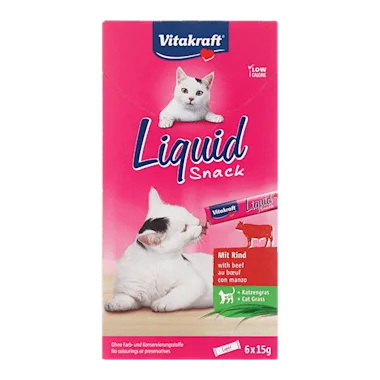 Je kat heeft weer eens haar favoriete plek op de bank gevonden, maar in plaats van zich te concentreren op haar krabben, kun je haar nu afleiden met de onweerstaanbare Vitakraft® Liquid Snack! Dit vloeibare tussendoortje met kattengras en inuline is een echte traktatie voor je pluizenbol. Geef het puur uit je hand, als topping over haar voer, of als verfrissend ijsje op warme dagen. Terwijl ze geniet van deze heerlijke snack, wordt haar spijsvertering ondersteund en heeft ze geen tijd meer om aan de bank te krabben!