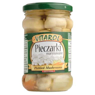 Ingrediënten: champignons, water, wortel, ui, suiker, azijn, zout, kruiden, MOSTERDZAAD, conserveermiddel: E223 (SULFIET).