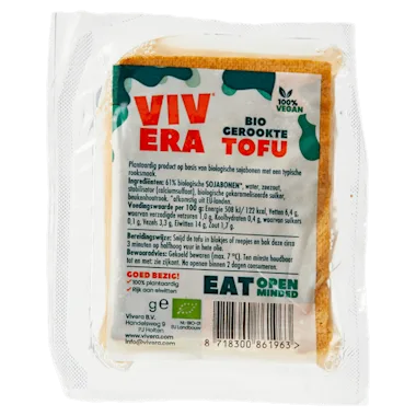 Plantaardig product op basis van bilogische sojabonen met een typische rooksmaak.
