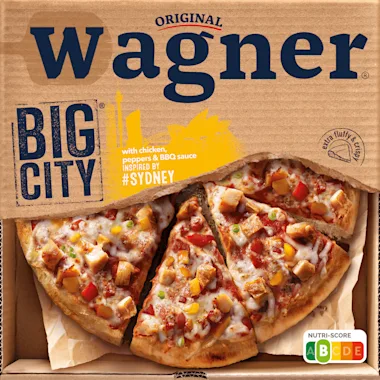 INGREDIËNTEN: Tarwemeel, barbecuesaus (20%) (tomatenpuree, water, suiker, witte balsamico azijn [witte wijnazijn, druivenmost], maïszetmeel, zout, specerijen, kruiden, gerookt paprikapoeder [paprika, rook], gerookt zout [zout, rook], karamelpoeder), mozzarella (melk) (11%), water, kruidig gekookt kippenvlees (8%) (kippenvlees, koolzaadolie, zout, specerijen, knoflook, dextrose, maltodextrine), gegrilde paprika (6%), koolzaadolie, lente-ui (1%), gist, zout, tarwegluten, gedroogde zuurdesem (tarwe), tarwezetmeel (voorverstijfseld), dextrose.
