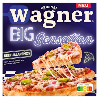 INGRÉDIENTS : farine de BLÉ, eau, mozzarella (LAIT) (11%), purée de tomates (9%), piments jalapeño (4%) (piments jalapeño, vinaigre d'alcool, sel), viande de bœuf hachée, cuite (4%), oignons (4%), huile de colza, sucre, sel, amidon, vinaigre balsamique blanc (vinaigre de vin blanc, moût de raisin), levure, fromage à pâte dure (MELK) (0,5%), GLUTEN de BLÉ, levain déshydraté (BLÉ), amidon de BLÉ prégélatinisée, farine de BLÉ prégélatinisée, herbes et épices, poudre de poivron fumé, dextrose, sel fumé, ail, poudre de caramel.