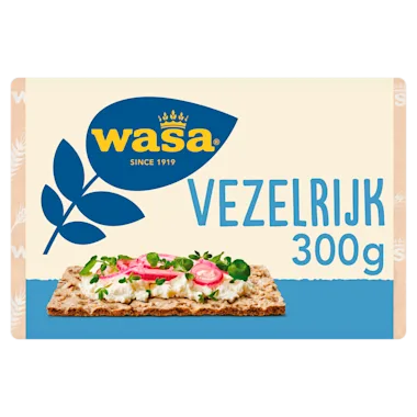 Wasa Vezelrijk is gebakken met volkoren roggemeel en tarwezemelen. De cracker is krokant en knapperig en bovendien rijk aan vezels.