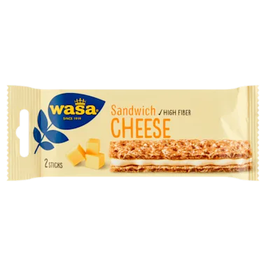Wasa Sandwich Cheese bestaat uit twee repen knäckebröd met een vulling met kaassmaak. Rijk aan vezels en geschikt voor ieder moment van de dag.  Laat ontbijt of tussendoor, Wasa Sandwich kan altijd.