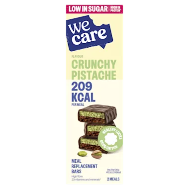 Ingrediënten: Zoetstof: maltitolen, pure chocolade met zoetstof 19% (cacaomassa¹, zoetstof, maltitolen, cacaoboter¹, emulgator: lecithinen (SOJA), natuurlijk vanillearoma), TARWEgluten, SOJAeiwit crispies (SOJAeiwitten isolaat, tapiocazetmeel, zout), stabilisator: sorbitolen, SOJAeiwitten (lecithinen (SOJA)), fructooligosacharidenstroop (cichoreiwortelvezels), geroosterde SOJAvlokken, volkoren HAVERvlokken, mineralen (kalium, calcium, magnesium, natrium, zink, mangaan, ijzer, koper, jood, selenium), fructooligosachariden (cichoreiwortelvezels), zonnebloemolie, maltodextrine, mager cacaopoeder¹, zeezout, aroma (pistachesmaak), vitaminen (C, E, niacine, A, pantotheenzuur, D, B12, thiamine, riboflavine, B6, K, foliumzuur, biotine), kleurstof: kopercomplexen van chlorofylen en chlorofylinen, ¹RAINFOREST ALLIANCE GECERTIFICEERD. LEES MEER OP RA.ORG.