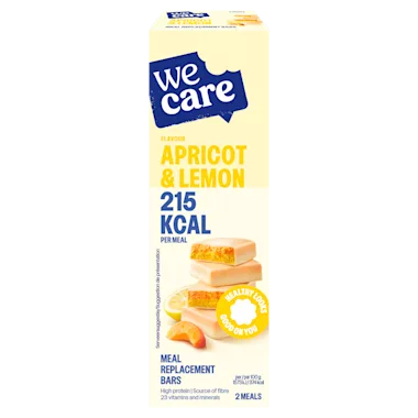 Maaltijdvervangend Product voor Gewichtsbeheersing, Repen met Abrikozenblokjes en Citroen Omhuld met Wit Glazuur.