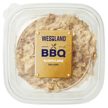 Onze ambachtelijke rundvlees salade nu ook in een BBQ versie. Perfect voor bij de BBQ of picknick!<lt/>br/<gt/> <lt/>br/<gt/> - Ambachtelijk bereid met langzaam gegaard draadjesvlees<lt/>br/<gt/> - Heerlijk bij de barbecue of picknick<lt/>br/<gt/> - Ook lekker als bijgerecht, voor de lunch of avondmaaltijd<lt/>br/<gt/> - Bereid met het lekkerste verse rundvlees<lt/>br/<gt/> - Met zorg en vakmanschap gemaakt, proef de kwaliteit.<lt/>br/<gt/> <lt/>br/<gt/> Over onze BBQ rundvlees salade: Nu ook de ambachtelijke rundvlees salade van Westland Salades in een BBQ versie, heerlijk voor bij de barbecue of picknick! Het BBQ-seizoen komt er weer aan. Samen met je gezin, familie en vrienden ga je met het lekkere weer naar buiten en dan wordt de BBQ weer tevoorschijn gehaald. Naast de heerlijke stukjes vlees, vis, groenten en andere vegetarische gerechten, zijn de BBQ-salades van Westland Salades als bijgerecht onmisbaar! Onze BBQ rundvlees salade wordt gemaakt van zorgvuldig geselecteerde aardappelen, vers rundvlees en een mix van knapperige groenten zoals wortel, ui en augurk.<lt/>br/<gt/> <lt/>br/<gt/> Over Westland Salades: Sinds 1969 maakt Westland Salades met veel vakmanschap en een flinke dosis nuchterheid de lekkerste en meest smeuïge salades op aardappelbasis. Al jaren is Westland Salades een begrip. De ambachtelijke recepturen en specifieke bereiding geven onze producten die unieke Westland-smaak. En daar zijn we trots op! Wij besteden veel aandacht aan het sorteren van de beste ingrediënten en dat proef je! Daarnaast vinden we vakmanschap heel belangrijk en investeren we hier samen met onze mensen veel tijd in. Dat heeft ons groot gemaakt en die kwaliteit blijven we hoog houden.