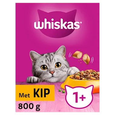 WHISKAS® 1+ droge brokjes met Kip is een 100% volledige en evenwichtige voeding met een optimale balans van vitaminen en mineralen, om je te helpen de best mogelijke verzorging te geven aan je volwassen kat. Met onweerstaanbare gevulde brokjes, knapperig van buiten en heerlijk zacht van binnen.