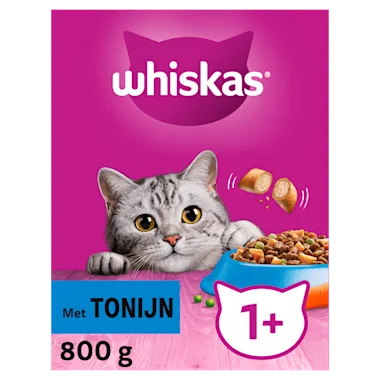 WHISKAS® 1+ droge brokjes met Tonijn is een 100% volledige en evenwichtige voeding met een optimale balans van vitaminen en mineralen, om je te helpen de best mogelijke verzorging te geven aan je volwassen kat. Met onweerstaanbare gevulde brokjes, knapperig van buiten en heerlijk zacht van binnen.