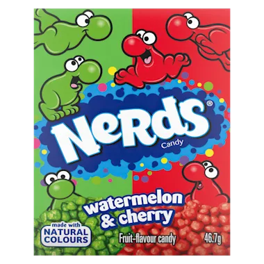 Ingrediënten: glucosesiroop*, suiker, dextrose, voedingszuur (E296), planten- en groentenconcentraten (spirulina, radijs), natuurlijke aroma's, verdikkingsmiddel (E414), glansmiddel (E903), kleurstof (E100), geconcentreerd watermeloen sap. *Bevat genetisch gemodificeerde organismen. Kan sporen van gluten (tarwe) en eieren bevatten.