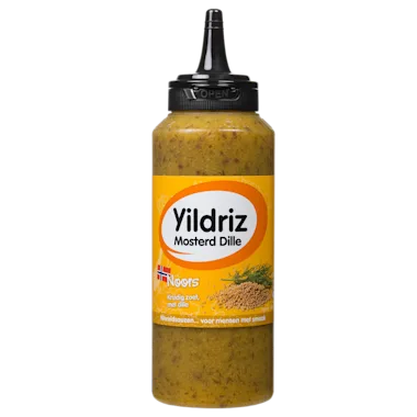 Ingrediënten: MOSTERD 34% (water, MOSTERDZADEN, azijn, zout, specerijen, natuurlijk kruidenaroma), suiker, zonnebloemolie, honing, water, dille puree 2,5% (dille, water, zout, zonnebloemolie), MOSTERDZAAD 1,3%, zout, verdikkingsmiddel: xanthaangom, conserveermiddel: kaliumsorbaat, kleurstof: natuurlijk caroteen.