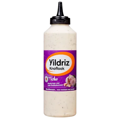 Ingredienten: water, raapolie, natuurazijn, suiker, glucose-fructosestroop, gemodificeerd maiszetmeel, maiszetmeel, knoflook 2,2%, VRIJE UITLOOP EI en EIGEEL, zout, kruiden, voedingszuur: citroenzuur, MOSTERDMEEL, kaliumchloride, verdikkingsmiddelen: guarpitmeel en xanthaangom, specerijen, natuurlijk aroma, conserveermiddelen: kaliumsorbaat en E211, antioxidant: E385.