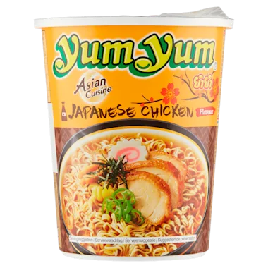 Ingrediënten: Noedels: TARWEmeel, palmolie (bevat antioxidant: E319), tapiocazetmeel, soep (aroma, smaakversterkers: E627, E631, gistextract), zout, zuurteregelaars: E500, E452, E451, verdikkingsmiddel: E466. Smaakverfijner: smaakversterkers: E621, E631, E627, SOJAsauspoeder (SOJAbonen, TARWE, glucosesiroop, maltodextrine, kleurstof: E150c, voedingszuur: E330) 1,7%, suiker, zout, groenten (uienblad, ui, knoflook), gedroogd zeewier, maltodextrine, kiparoma (bevat smaakversterkers: E631, E627, antiklontermiddel: E551), specerijen (gemalen peper, gemalen gember, gemalen kurkuma), kleurstof: E150c, gistextract, palmolie (bevat antioxidant E320), antiklontermiddel: E551, voedingszuur: E296, verdikkingsmiddel: E415. Dit product kan sporen van schaaldieren, ei, vis, melk, selderij en sesam bevatten.