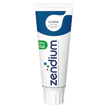 Zendium Classic Tandpasta zorgt voor sterke tanden en gezond tandvlees. Zendium tandpasta versterkt de natuurlijke afweer van de mond. Wist je dat er meer dan 100 miljard bacteriën in je mond aanwezig zijn? De unieke formulering van Zendium tandpasta, met 100% natuurlijke enzymen, stimuleert de goede bacteriën in je mond terwijl het de slechte bacteriën tegengaat om zo je mond in gezonde conditie te houden. Zendium, natuurlijke bescherming*, wetenschappelijk bewezen.