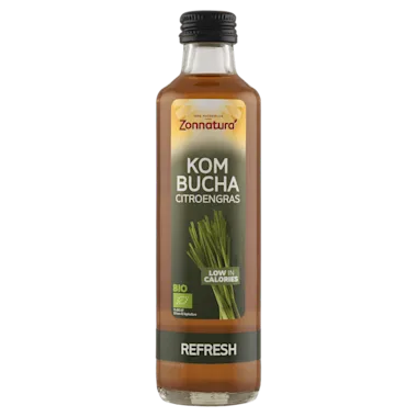 Ingrediënten: gefermenteerde thee (water, kombuchaculturen, suiker*, zwarte thee*), gedroogde citroengras* 0,4%. *Ingrediënt uit biologische teelt.
