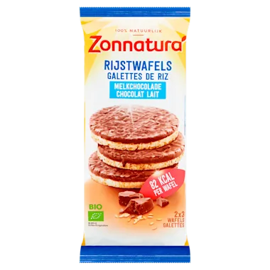Ingrediënten: MELKchocolade 60% (rietsuiker*, cacaoboter*, volle MELKpoeder* 19%, cacaomassa*, emulgator: zonnebloemlecithine*), rijst* 40%. * ingredient van biologische teelt