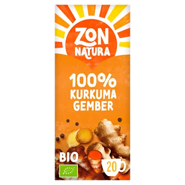 Ingrediënten: kurkuma* 60%, gember* 38%, zwarte peper* 2%. *Ingrediënt van biologische teelt.