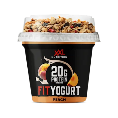 Eiwitrijke yoghurt perzik en muesli. Met suikers en zoetstof.