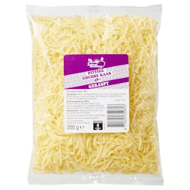 Ingrediënten :kaas (gepasteuriseerde MELK, zout, zuursel, microbieel stremsel, conserveermiddel: E251, kleurstof: E160a), aardappelzetmeel.